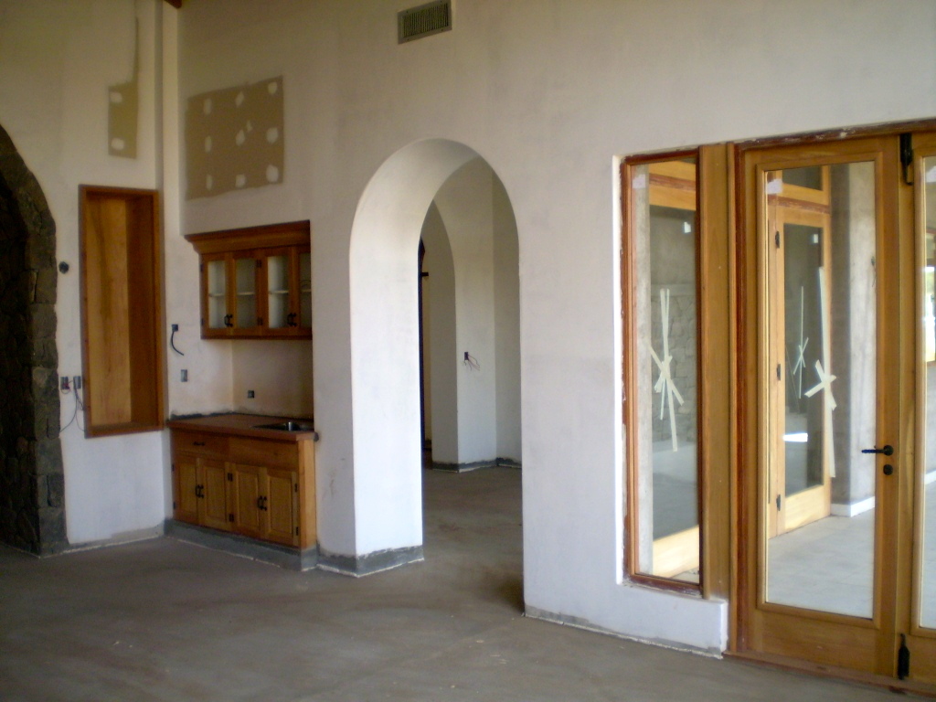 Interior painting has started, and the wood floor will be laid shortly thereafter. After much testing and sampling, I will be choosing exterior paint and interior wood finish on this trip. I selected several interior colours on my last trip and have been eliminating them as test patches go up on the wall, and I see the effects of light, etc. (Beware of the green light cast by the vineyards and golf course, and take several photos, flash on/off, etc.)