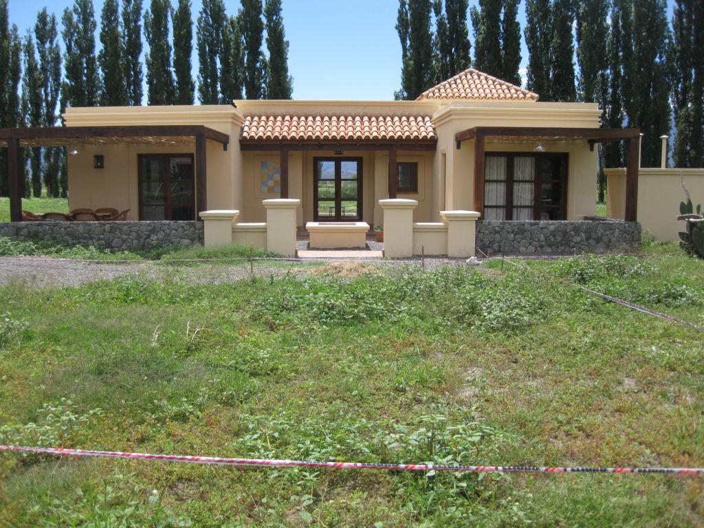 At approximately 5 meters from the entry, you will arrive to a parking lot (10 x 10 m) belonging to the guesthouse. It has the benefit of enlarging the parking area and avoiding too many cars from being next to the main house. In fact, a crowded parking place would ruin the view from the “parrilla”. The road, with a boundary of grasses and flowering plants, continues towards the main parking lot, which will have the shadow of three molle trees and a trellis for two cars.