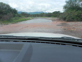 We rented a car this morning & drove from Salta to Cafayate. Yes, it's true: water is flowing over Route 40, & the road has washed away in 2 places.