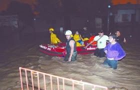 | a salvo: los vecinos de 13 de Abril son rescatados en un gomon |
