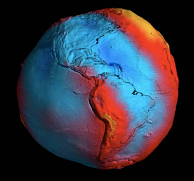 yellow = strongest gravity; blue = weakest